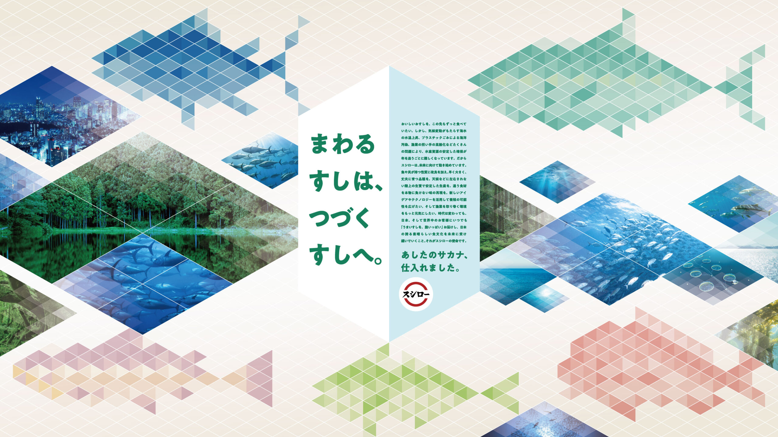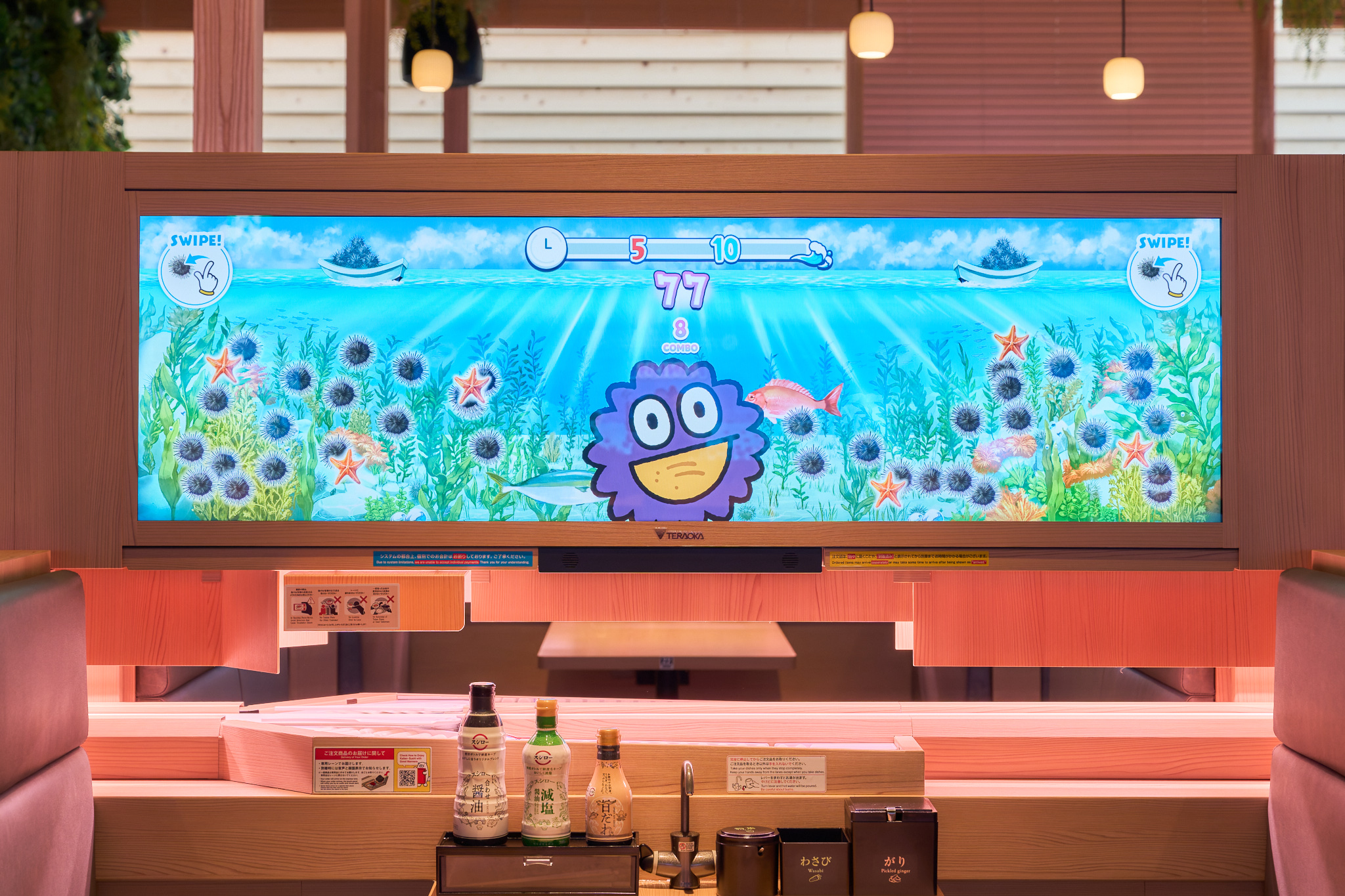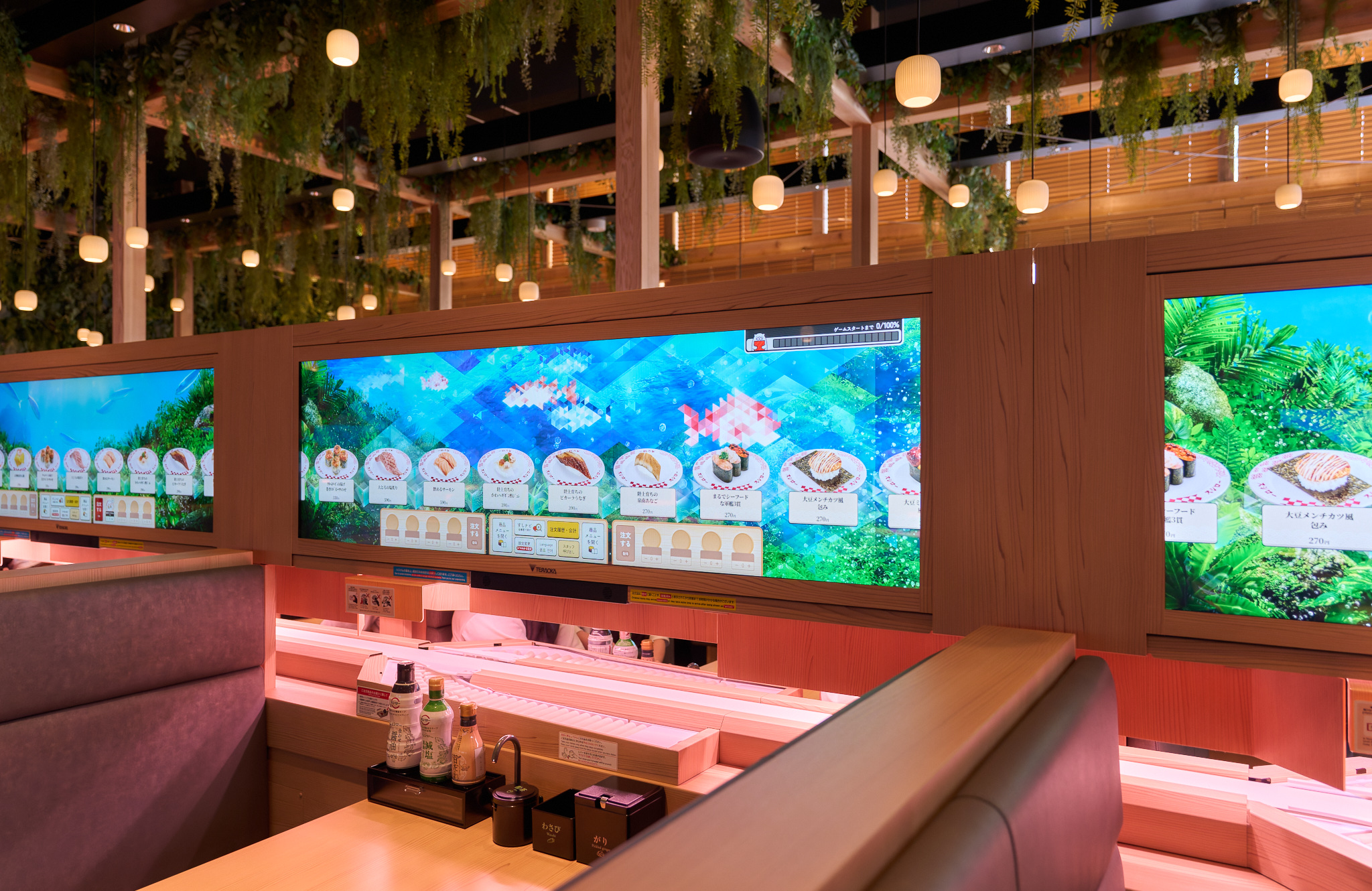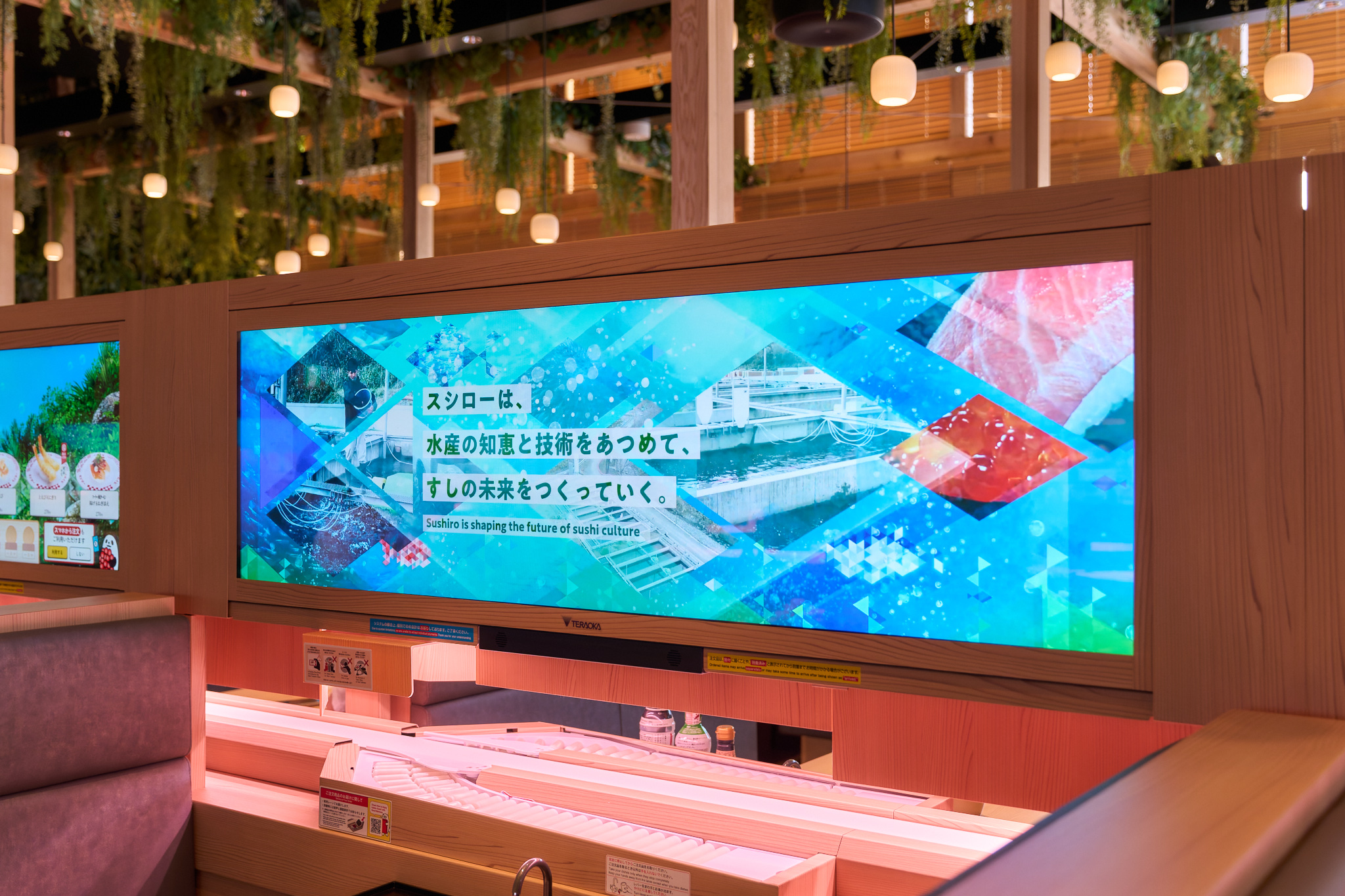 スシローが2025年日本国際博覧会(大阪・関西万博)へ出店した「スシロー未来型万博店」において、 キービジュアル開発・店舗内映像制作・インタラクティブゲームコンテンツ制作を担当しました。 「まわるすしはつづくすしへ」というキャッチコピーの元、 2050年のサスティナブルな未来の「サカナ」・「寿司」を見据えたスシローのさまざまな取り組みを楽しみながら理解を深められるよう、SUSHIRO 2050のコンセプトを伝えるオープニングムービー、キービジュアルを開発。 そして、注文用タブレット「デジロー」で楽しみながら学べるゲームコンテンツとして、 プレイヤーが勇者となり、水産業が直面する課題をクイズ形式で解決していくロールプレイング風ゲーム「SUSHI QUEST」とウニの増加による海の環境問題や、ウニを捕獲することで海藻が育ち海が守られる仕組みを学べる「UNI CATCH GAME」を担当しました。